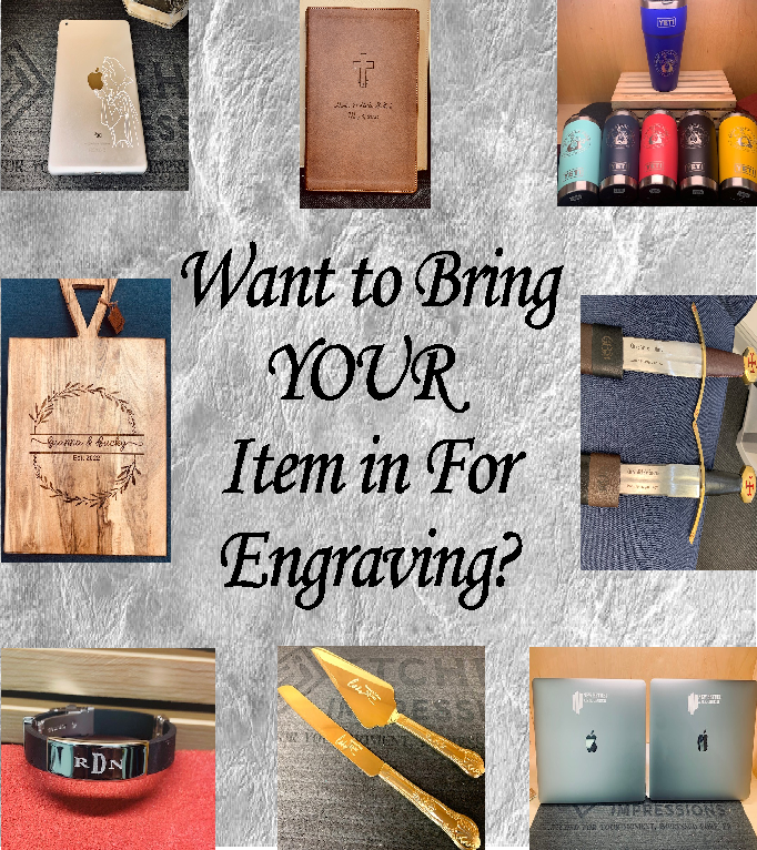 Specializing in CUSTOM engraving of gifts, awards, and items for your event, organization, family, and friends. We also provide on-site engraving services for your event.